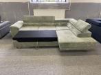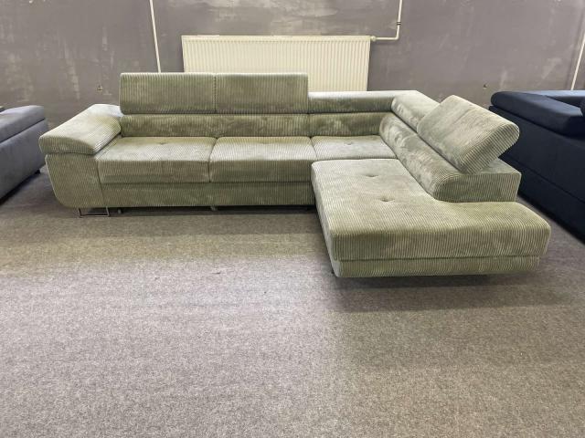 Como II. ülőgarnitúra: Modern stílusú sarokgarnitúra, melynek kellemesen puha, hullámrugós ülőfelülete egyedülálló komfortot biztosít. A racsnis szerkezetű, fokozatosan állítható fejtámlák tökéletes támasztékot adnak. Ágyazható ülőgarnitúra széles fekvőfelülettel, így akár az egész éjszakát kényelmesen eltöltheti a nappaliban. A háttámlás elem ágyneműtartóval felszerelt, mely több párna és takaró tárolását teszi lehetővé. Kárpit anyaga puha tapintású, mégis rendkívül magas kopásállóságú szövet. Zöld kordbársony szövettel.