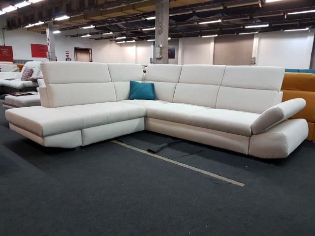 Corina sarokgarnitúra (Kanizsa Trend): Fiatalos megjelenésű, ágyazható, ágyneműtartós ülőgarnitúra kényelmes, lágyabb komfortú üléshabokkal, fokozatosan állítható fejtámlákkal és karfával.