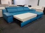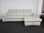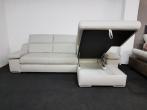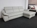 Tiamo I. bőr sarokkanapé (Kanizsa Trend - Polsteria): modern, ággyá nyitható, ágyneműtartós ülőgarnitúra rugós ülőfelülettel, 3× fejtámla- és 2× karfa funkcióval. Bevonó anyga számos különböző színű valódi bőr kárpitból választható, illetve szövet kárpittal is rendelhető.